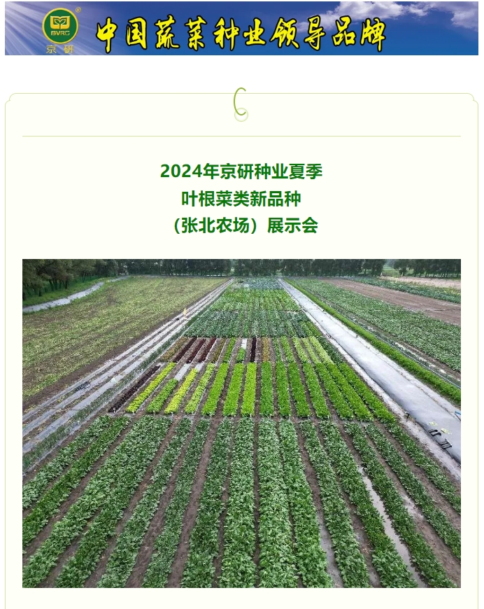 京研種業定于2024年7月25日(7月24日報到)在張北農場召開葉根菜新品種展示會,